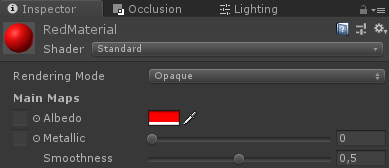 - Створіть новий матеріал, назвіть його "RedMaterial" і змініть його колір на червоний, а потім призначте його кубу (це лише для того, щоб перешкода відрізнялася від основної платформи)