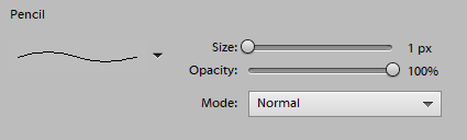- Виберіть інструмент «Олівець» і встановіть для нього розмір 1 піксель і непрозорість 100%