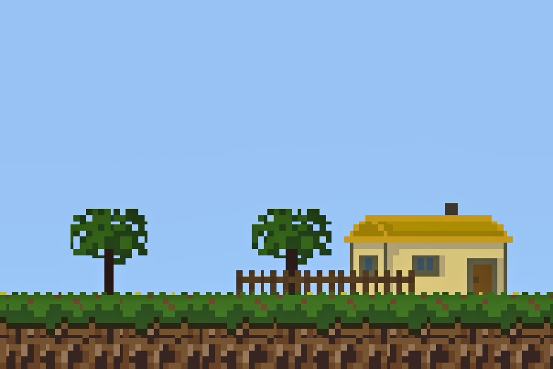 - Тим часом я повторив той самий процес для інших 3 елементів мого мистецтва (будинок, паркан і дерево)