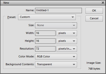 - Встановіть ширину та висоту на щось невелике (у моєму випадку я почну з створення ґрунтової плитки, тому ширина та висота встановлені на 16)