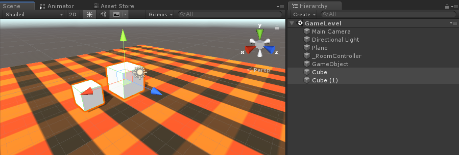 - Відкрийте сцену "GameLevel" і створіть пару кубів (GameObject -> 3D Object -> Cube)
