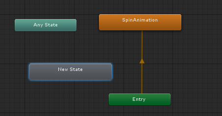 - Ви помітите, що є стрілка, яка вказує від "Entry" до "SpinAnimation", що означає, що анімація відтворюватиметься, як тільки почнеться сцена, але це не те, чого ми хочемо, ми хочемо відтворювати анімацію лише після натискання клавіші.