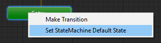 - Виберіть Entry state -> Клацніть правою кнопкою миші на ньому -> Set StateMachine Default State, потім наведіть курсор на "New State":