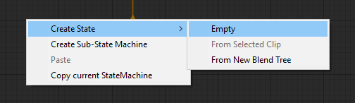 - Клацніть правою кнопкою миші вікно Animator -> Create State -> Empty: