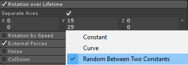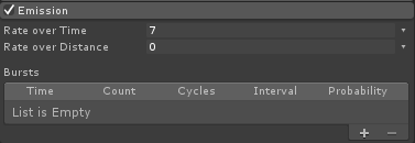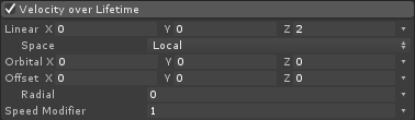 - У системі частинок увімкніть такі модулі: Emission, Shape, Velocity over Lifetime, Color over Lifetime, Size over Lifetime , Обертання протягом життя, Зовнішні сили, Рендерер.